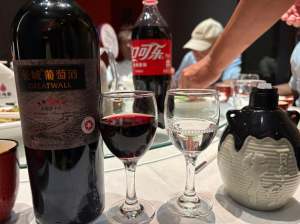 這是我們自己準備的北京地酒~牛欄山二鍋頭,長城葡萄酒紅酒