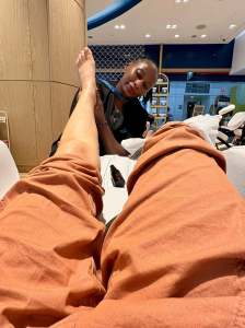 已經飛了8小時45分,在杜拜機場轉機,來做Relax SPA,還要再飛8小時15分⋯我想,在機場做SPA比逛街省錢😆