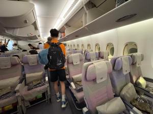 只有一層座位,穿過頭等、豪經艙,來到我的位子。