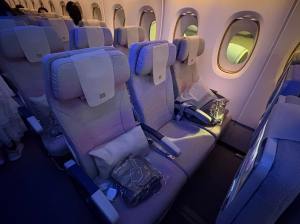 椅子很硬,冷氣超冷,毯子沒蓋到的地方都像在冰箱裡。