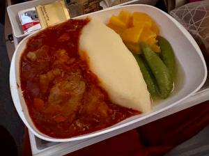 主餐:燉牛肉、馬鈴薯泥、豌豆與甜椒。料理的味道很棒