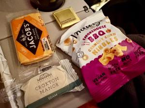 怕你吃不飽,還附了一堆巧克力、起司、餅乾、零食