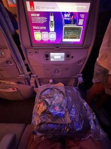日間航班沒有過夜包,只有抱枕、毛毯和耳機。