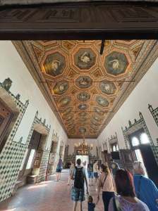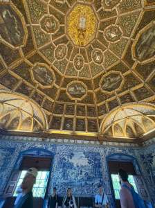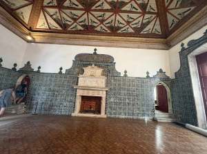 天鵝廳,屋頂有27隻天鵝。相傳當時國王約翰一世的女兒非常喜歡天鵝,在27歲那年就嫁作他婦了,過於思念之下,就請畫師在辛特拉宮Palácio Nacional de Sintra天花板繪製27隻天鵝,每次想女兒就抬頭看看便已滿足。