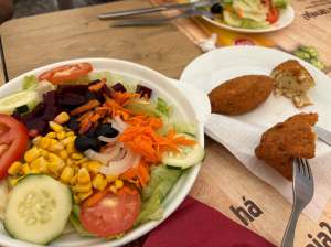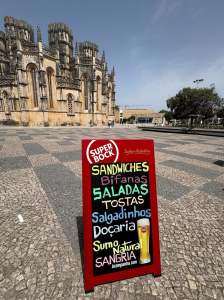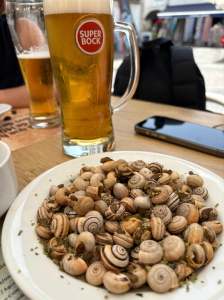 一邊用餐,一邊欣賞修道院風景。品嚐葡萄牙鱈魚球、喝啤酒🍺 chill~