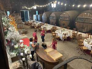 這原本也是個陳年的大木桶,左邊的玻璃屋是酒莊品酒室