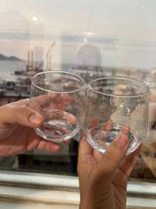 在福澳港邊,吹著海風喝高粱配碳烤,竟然不冷耶~