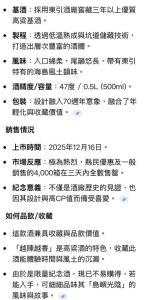 | 收藏價值 | 普遍 | 高(年份越長越貴) | 很高(稀有製程+限量) |