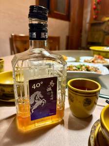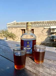 馬祖家釀老酒(私人釀的酒)只是裝在高粱的瓶子裡,喝起來很像台東小米酒,但沒那麼甜,多了點海味。點一瓶來地餐搭地酒!