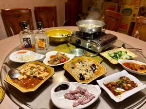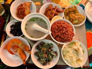 菜色有麻婆豆腐、燙小卷、豆瓣鮮蚵、獅子頭、炒青菜、炒魚麵、肉絲炒豆皮、炸海鮮卷、白飯、蘿蔔魚丸湯。豐盛,但少了馬祖味。
