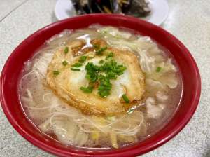 老酒麵線(A先生直嚷和北竿鏡沃差太多-普通的麵線普通荷包蛋加餡程老酒就上桌,但就是要點,才有比較⋯不比不知道,一比真知道)