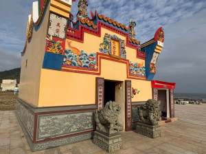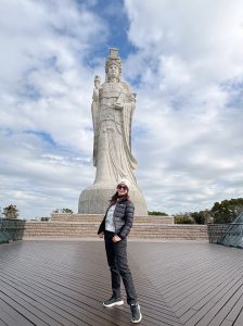 媽祖巨神像,高29.6公尺,數字同馬祖四鄉五島總面積,有守護之意;共使用365塊漢白玉石堆砌,象徵日日平安!