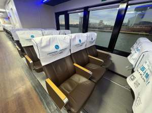 我們再度包船了,後艙有幾位阿兵哥。位子很大!3-4-3排座位。船大、座位大、浪也很大(心裡唱著海浪濤濤我不怕)