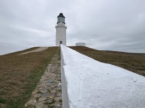 清朝時期的百年燈塔,因為風大,守夜人點燈都會被風吹熄,所以蓋了這個白牆,擋住風,讓燈塔人員沿著牆走…