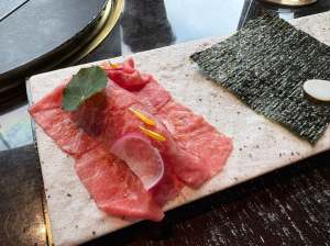 融合燒肉、牛肉壽司及懷石三大料理,除了高檔食材,全程由專人代烤,只需專心享受美食就好~