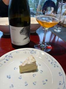 是支自然酒,陳瓶6年,香氣:果乾、土鳳梨、薑、鼻子有點臭臭的(煙燻發酵),入口清爽。超級自然酒味。滋味細膩豐富,獲巴黎⼀星~三星⽶其林餐廳愛⽤。可以搭山羊乳酪、煙燻起司,海鮮與肉,鹹味蕎麥薄餅。