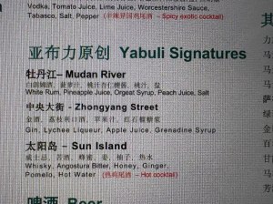 酒吧酒水單