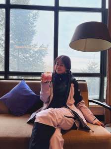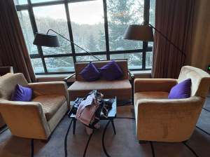 取完酒,就來沙發區,趁著窗外雪景,如臨仙境