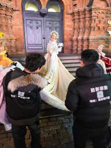現場就被要求加價(第一層剝皮),有比較好看的衣服、披風,最後聽到我來自台灣,搬出這件長袍大披風,拼命鼓吹來趟哈爾濱,一定要….於是,忘記是加多少錢了(第二層剝皮)。最後到教堂拍攝,確實,很冷的-10度低溫,全場這麼長的大披風只有我一人,還出動攝影助理幫忙拎披風。真正剝皮的是拍攝完,帶到小房間選照片,這是最後貓逆所在,要精修、要超精修、要相本(終極剝皮)….說不要還不放人出來,最後…只記得總計花了1千多人民幣!