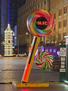 是哈爾濱最迷人浪漫的一條百年老街,隨處可見的俄羅斯商店。我們抵達已經夜深,仍看得出美麗的燈飾